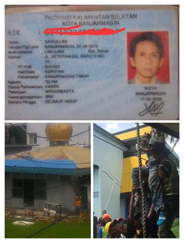 Korban bernama Saipullah (40) yang sedang mengecat kubah mushala di Gang Dua Kelurahan Sungai Baru Banjarmasin Tengah. Entah kenapa korban warga Sie lulut Kecamatan Kabupaten Banjar itu kesetrum.