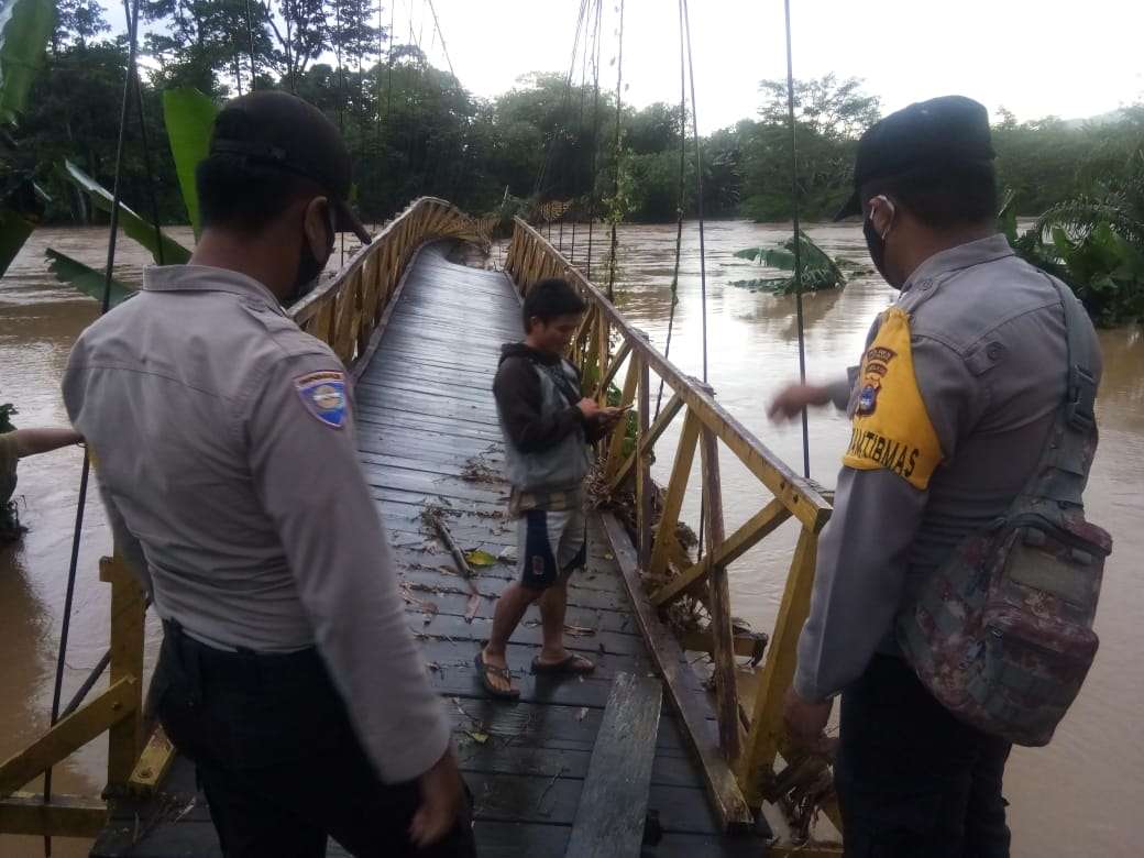 Selfie di Atas Jembatan Gantung Putus, Bhabinkamtibmas Ingatkan Warga