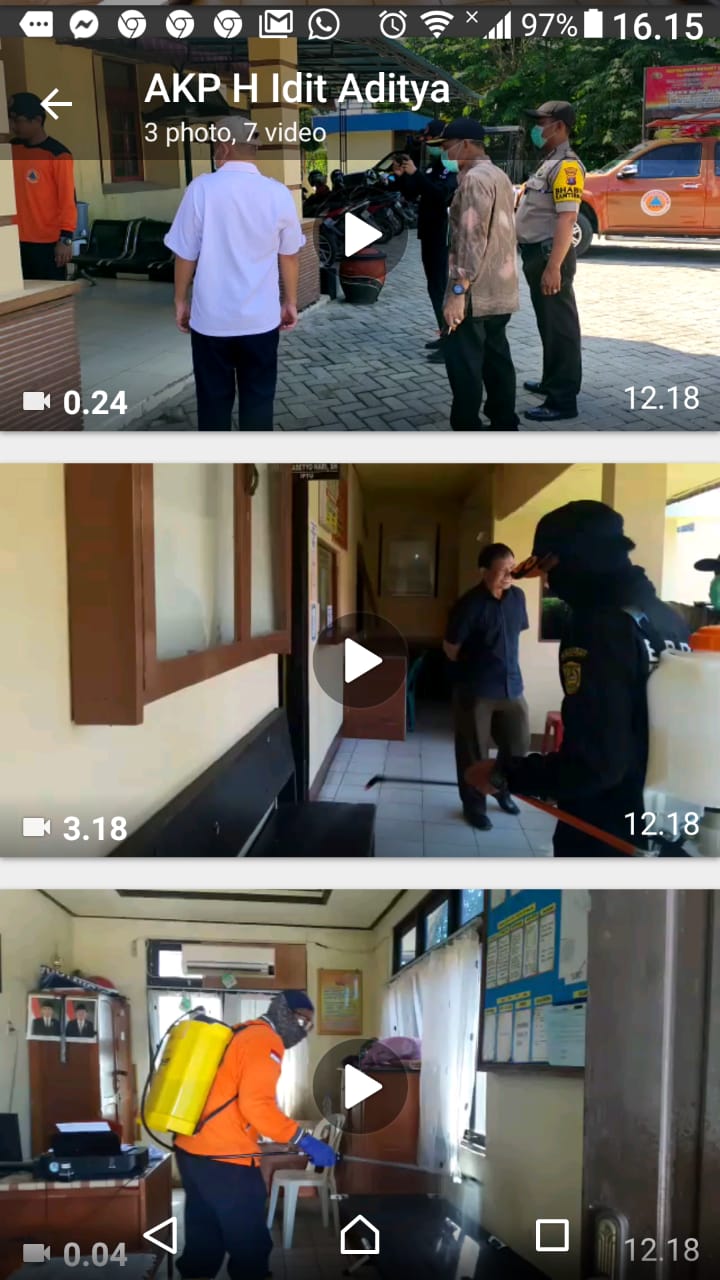 Banjarmasin, BARITO- Polsek Banjarmasin Selatan juga tak mau ketinggalan dalam melaksanakan antisipasi penyebaran virus Corona, Kamis (26/3/2020) pagi. Pencegahan terhadap Coronavirus Disease (Covid) 19 itu dilakukan dengan cara menyemprotkan disinfektan di seluruh ruangan polsek yang dipimpin Kapolsek AKP H Idit Aditya .