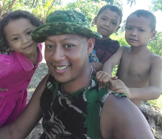 Kebersamaan masyarakat dan anggota Kodim 1007/Banjarmasin terlihat saat mereka istirahat. Keceriaan anak anak warga Kuin Kecil tergambar dari raut saat bergurau dengan para prajurit.