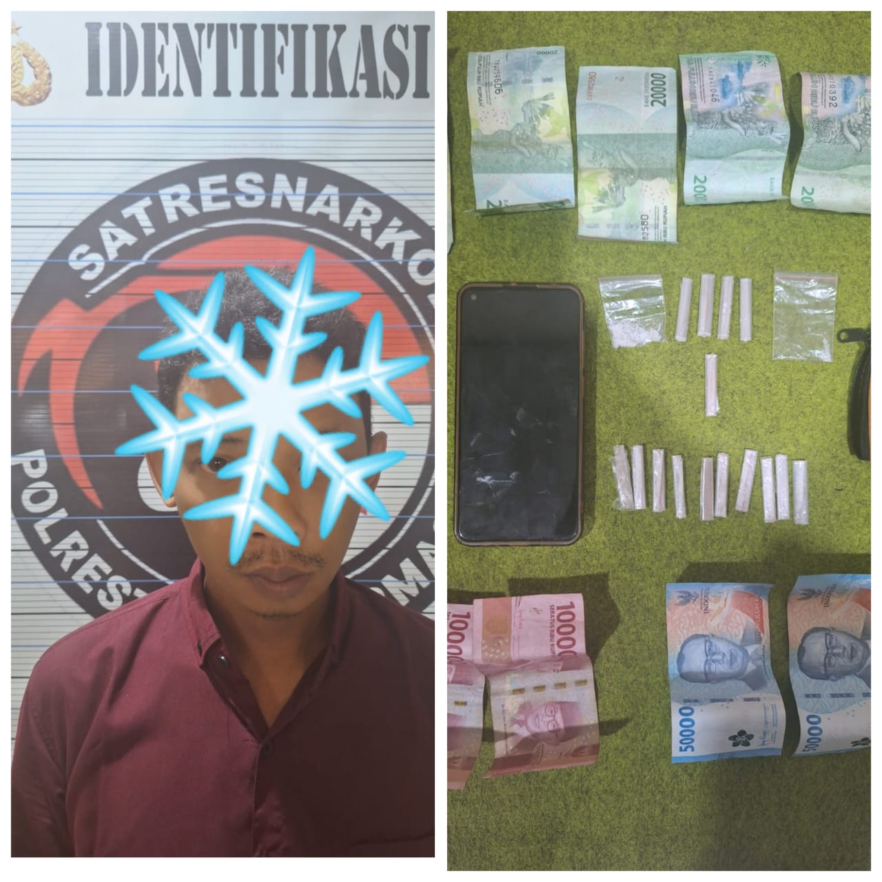 Banjarmasin, BARITOPOST.CO.ID – Pemilik sebanyak 17 Paket kecil Sabu-sabu yang terbungkus plastik klip berat 1,72 Gram ini disergap polisi, Sabtu (24/8/2024,) dinihari sekitar pukul 00.30 Wita. Pria berinisial YD (34) ini tertangkap tangan saat dihampiri anggota dan pelaku menginjak barbuk tersebut.