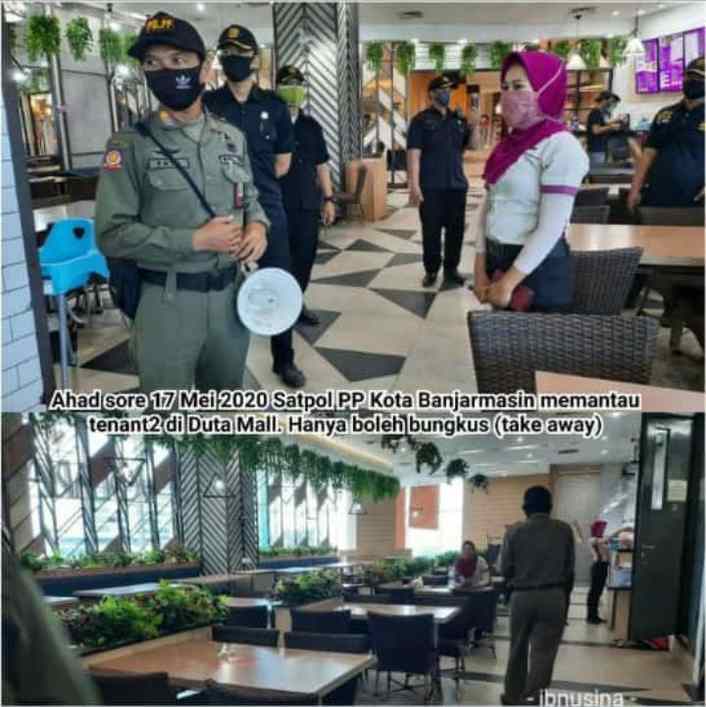 “Restoran di Duta Mall pantauan Satpol PP masih menjalankan sistim pengantaran atau take away. Karena makan ditempat tidak diperbolehkan, distancing sosial harus dijaga,” bebernya.