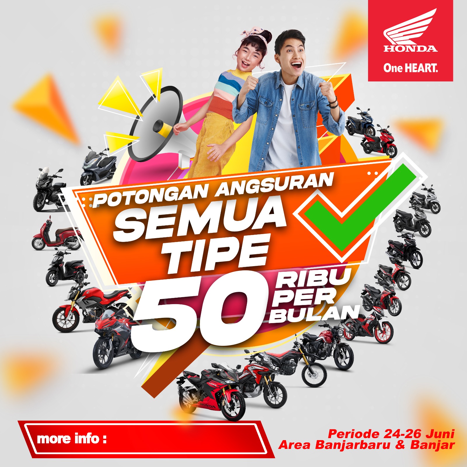 Program Potongan Angsuran dapat dinikmati konsumen umum yang datang di acara Showroom Event di dealer resmi Honda di wilayah Kota Banjarbaru dan Kabupaten Banjar. Potongan angsuran berupa nominal Rp50.000,-/bulan, dengan Syarat dan Ketentuan Berlaku.