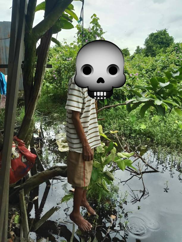 Korban bernama Arjo Saikun (67) itu ditemukan tewas tergantung di pohon jambu belakang sebuah rumah. Jasad pria renta berambut putih itu pertama kali ditemukan tetangga sebelah rumahnya bernama Putra Siagian (50) yang baru datang ke rumah.