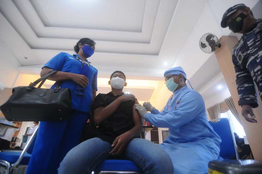 Banjarmasin, BARITO – Program serbuan vaksin untuk anak usia 12-17 tahun, Keluarga Besar TNI AL Lanal Banjarmasin, masyarakat pesisir yang berada di wilayah kerja Lanal Banjarmasin dan pelaku UMKM binaan Kadin Banjarmasin, kembali digelar TNI-AL Lanal Banjarmasin di Gedung Hasan Basry, Markas Komando Lanal Banjarmasin Jalan Ahmad Yani, KM 3,5, Rabu (14/7/2021).