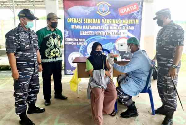 Vaksinasi ini diikuti oleh warga pesisir, pedagang, pelajar dan para manula, dengan menerapkan protokol kesehatan yang ketat, dengan melibatkan 13 Tenaga Kesehatan sekaligus sebagai Tim Vaksinator dari Balai Pengobatan (BP) Lanal Banjarmasin