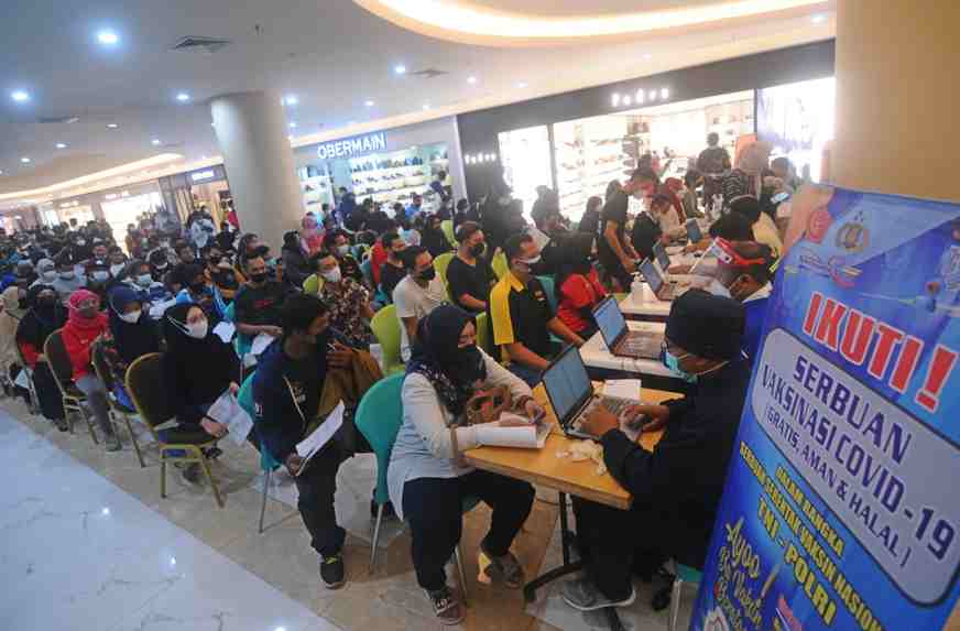 Sade, salah seorang pengunjung Duta Mall Banjarmasin ikut antri untuk di vaksin, menurutnya pelaksanaan vaksinasi di Mall merupakan sasaran yang tepat.