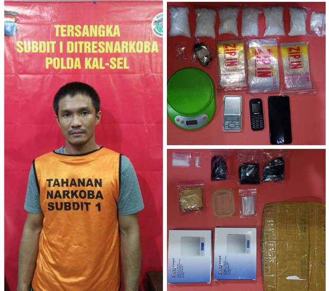 Jumlah barang bukti sebanyak itu disita dari terduga pengedar berinisial M. A. R. Als Alfan (37) yang disergap anggota Subdit 1 Dit Resnarkoba Polda Kalsel yang dipimpin AKBP Matsari tertangkap tangan membawa barang bukti 7 paket sabu dan 1 (satu) butir XTC warna cokelat bentuk amor dengan berat bersih 0,38 gram, Minggu (9/2/2020) sekitar pukul.17.00 wita,