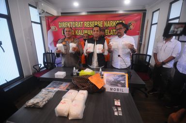 Narkoba itu dibawa oleh dua tersangka dengan tujuan Banjarmasin Kalsel menuju Provinsi Kalbar. Mereka berinisial EB dan EF, keduanya warga Banjarmasin yang berperan sebagai kurir.