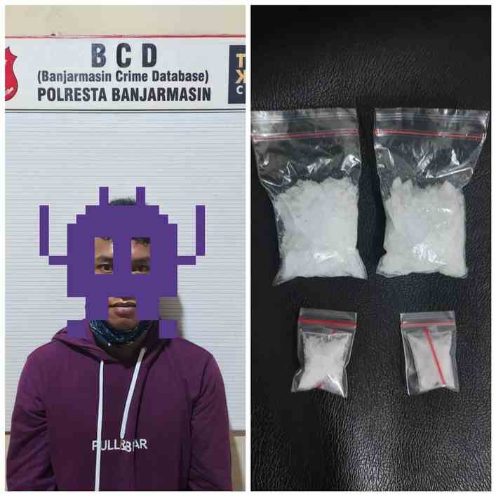 Narkoba itu terdiri dari dua paket besar Narkotika jenis sabu berat 50,3 Gram dan dua paket sabu berat 5,5 Gram. Warga Jalan Dahlia Gg Budaya RT 33 Kelurahan Telawang Kecamatan Banjarmasin Barat ini pun digelandang ke Mapolsek Banjarmasin Barat.
