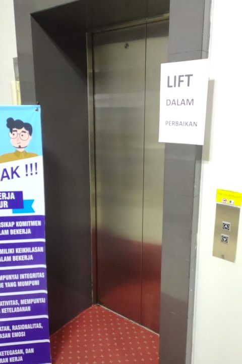 “Kondisi dua unit lift di gedung A memang rusak tidak bisa difungsikan,” ujarnya.