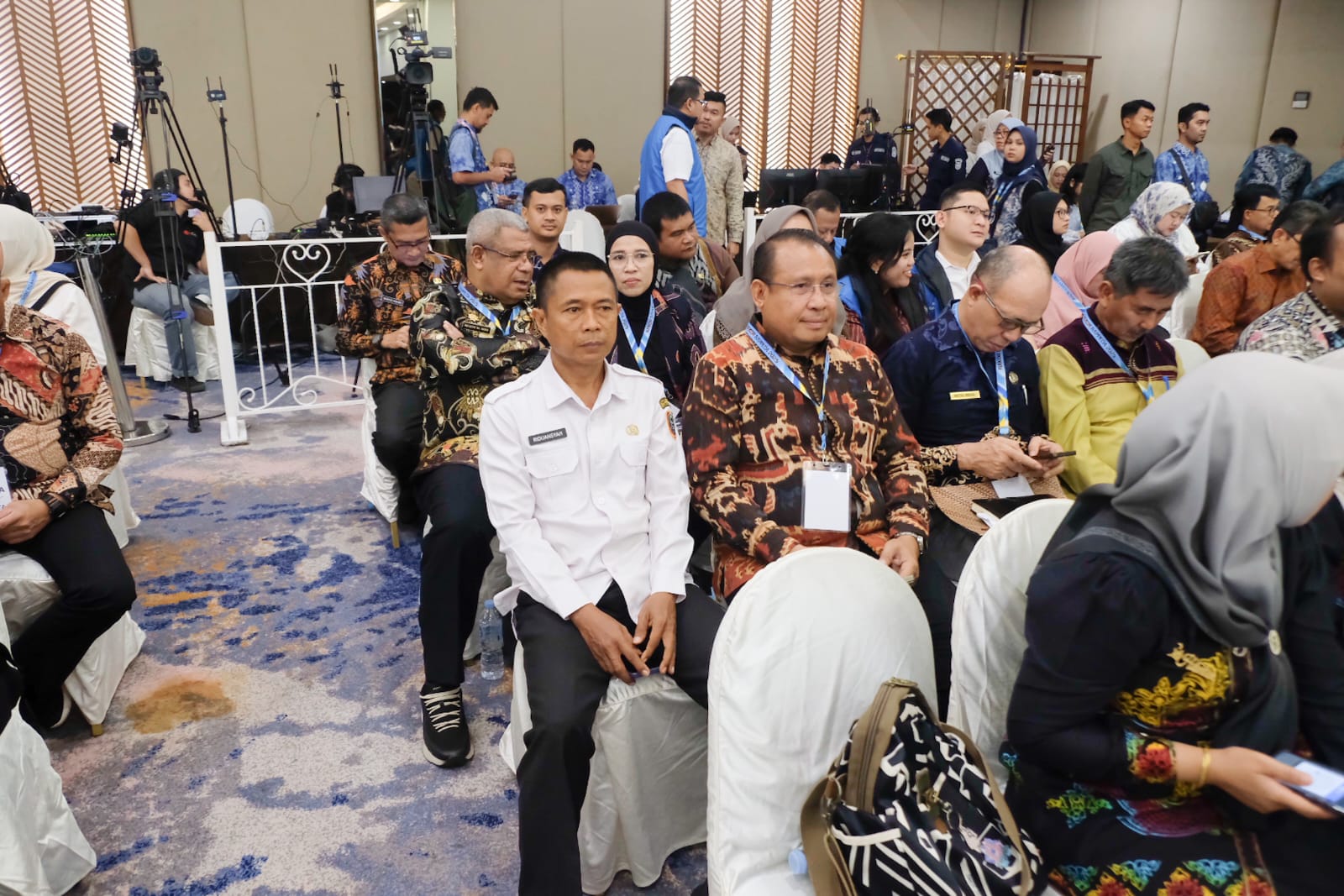 Kabag Layanan Aspirasi Sekretariat DPRD Kalsel Riduansyah, MAP (baju putih) mewakili sekretaris dewan hadir di acara Rakor Bappeda se-Indonesia di Banjarmasin.(foto : humasdprdkalsel)