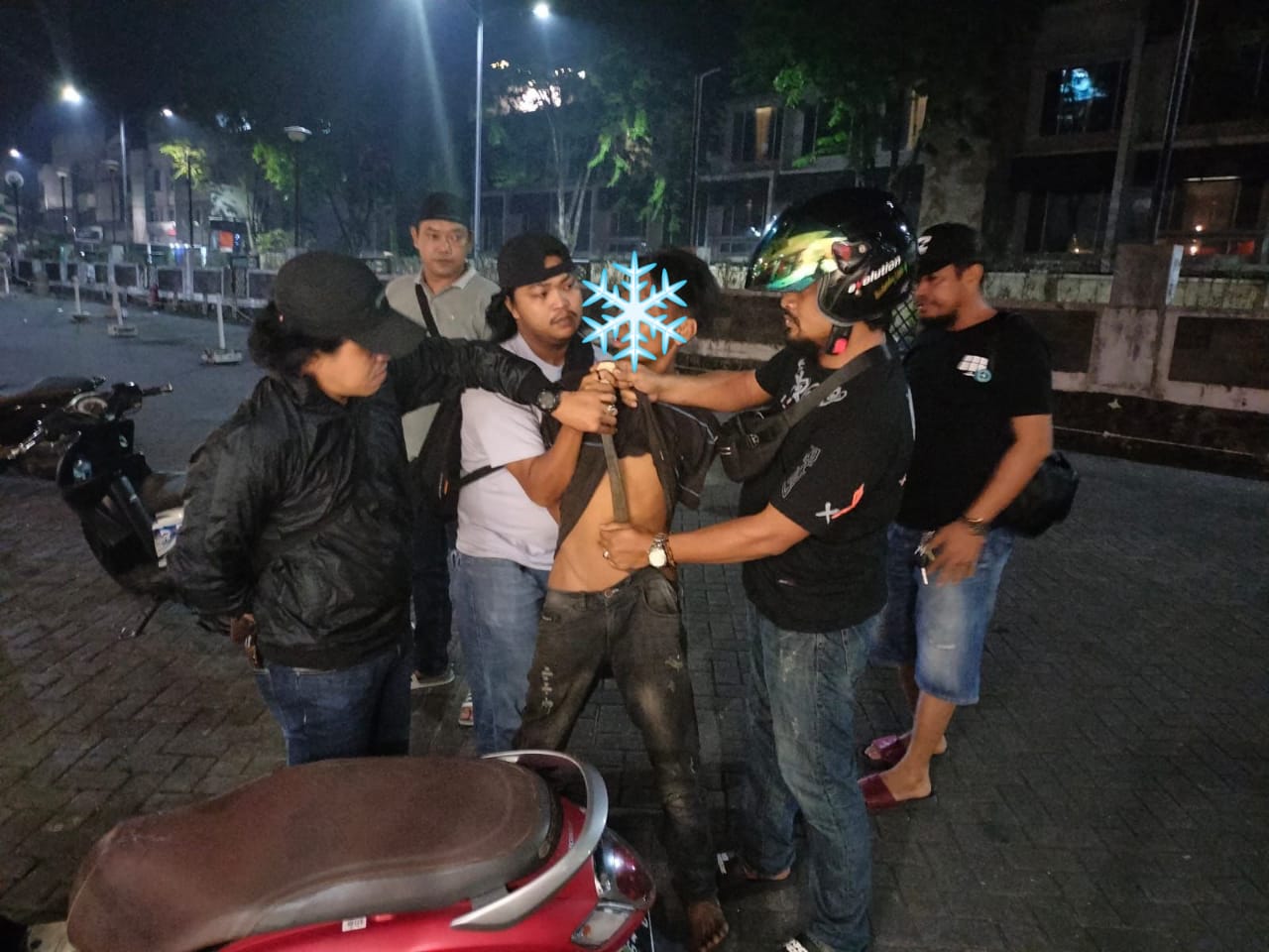 SIMPAN SAJAM - Pria berinisial AH ini simpan sajam bahkan diamankan dalam kondisi mabuk hingga diringkus polisi, Kamis (22/6/2023) dinihari. (foto :ist)