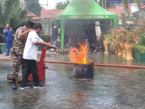 Semua PNS Dinas Sosial Provinsi Kalsel juga ikut mencoba melakukan pemadaman.