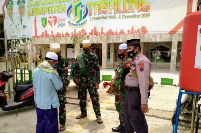 Sinergitas TNI-Polri, Jaga Shalat Jum’at dan Himbau Masyarakat Terapkan Prokes