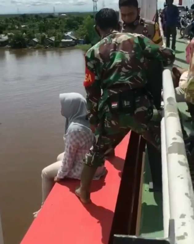 Video penyelamatan seorang wanita yang mengenakan kemeja panjang motif kotak dan jeans warna cream serta kerudung abu abu itu sendiri sudah beredar di media sosial. Nampak dalam video seorang anggota polisi dan seorang anggota TNI AD terlihat mencoba membujuk wanita yang duduk di pinggiran tebing jembatan itu . Dalam posisi