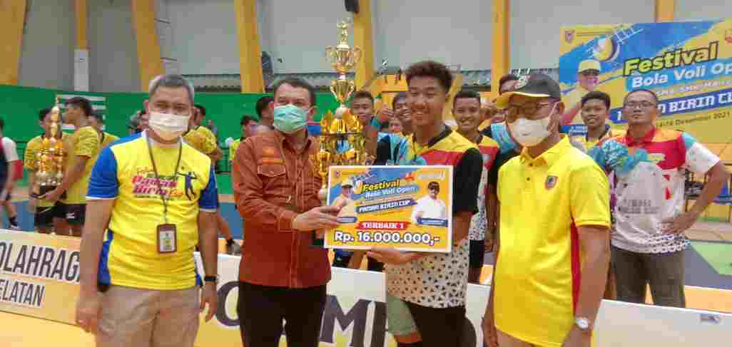 Banjarmasin, BARITO – Tampil meyakinkan, tim SMKN 1 Binuang berhasil menjuarai Festival Bola Voli Open Pelajar se-Kalsel Paman Birin Cup Tahun 2021. Keberhasilan tersebut setelah mengalahkan SMAN 1 Mataraman 3-0 dipartai final, Jumat (17/12/2021) di GOR Hasanuddin Banjarmasin.