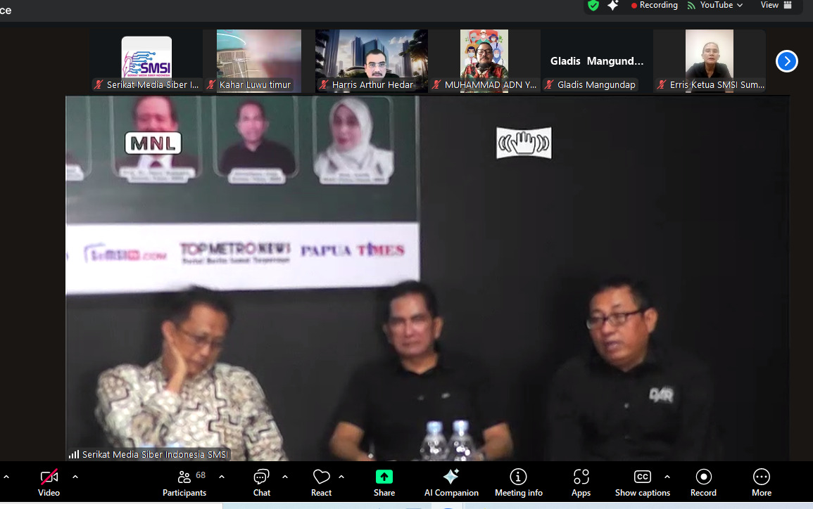 Dialog nasional yang mengambil tempat di Kantor SMSI Pusat, Jalan Vereran, Jakarta, dan diperluas dengan aplikasi zoom berlangsung Selasa, 7 Oktober 2025.