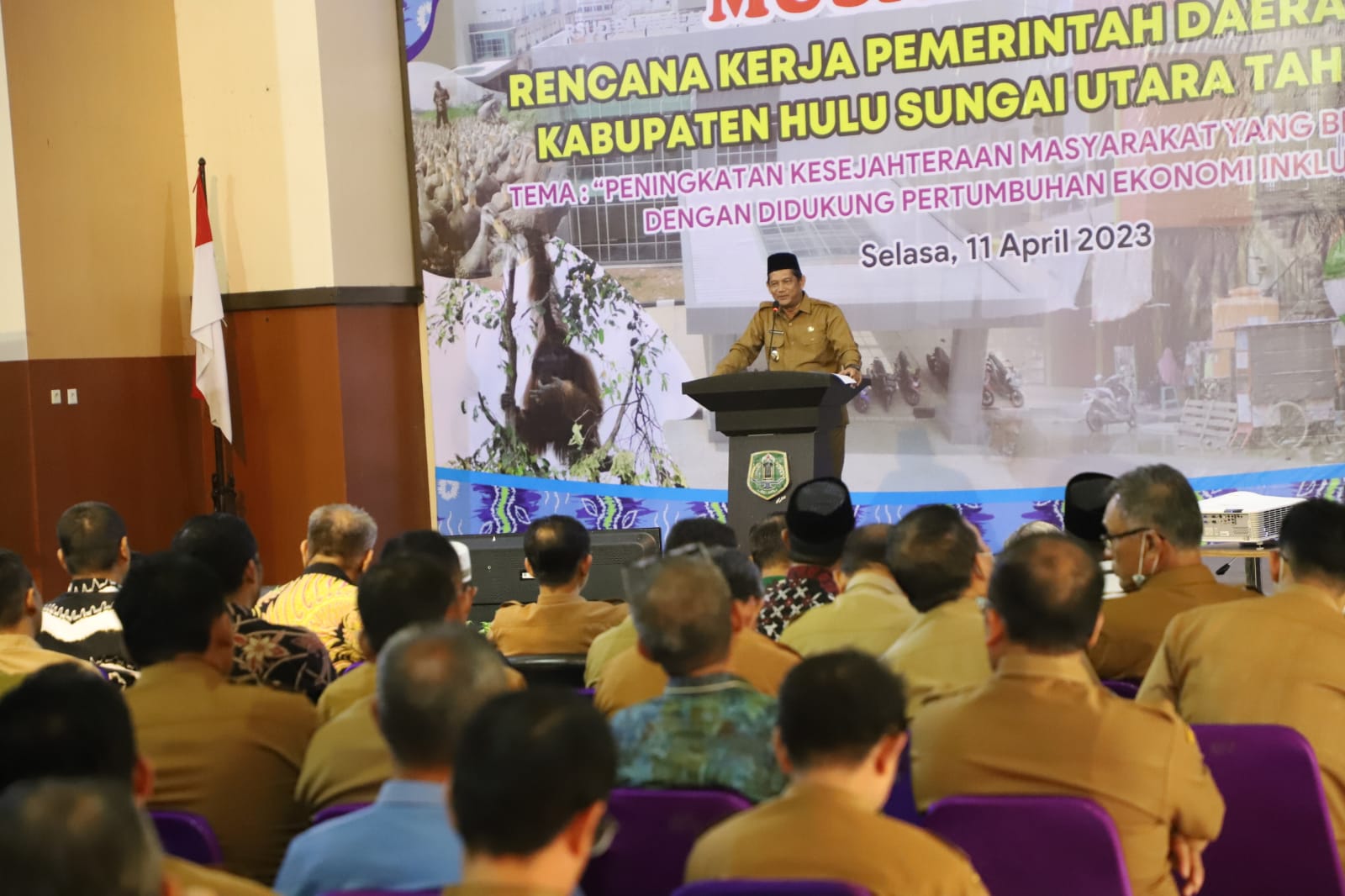 Musrenbang dengan tema “Peningkatan Kesejahteraan Masyarakat yang Berkelanjutan dengan Didukung Pertumbuhan Ekonomi Inklusif” dihadiri langsung Penjabat (Pj) Bupati HSU, R Suria Fadliansyah, M.Pd, Ketua DPRD Kabupaten HSU, Almien Ashar Safari, SKM, M.Kes bersama Forkopimda setempat serta seluruh SKPD, organisasi hingga stakeholder lainnya.