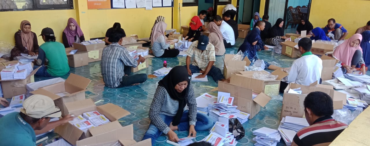 Ketua KPU Tala Arief Mukhyar, Minggu (24/2/2019) mengatakan, total yang di terima KPU Tala adalah sebanyak 2.139 kotak untuk 5 jenis surat suara pemilihan. Untuk proses rekrut masyarakat yang melipat surat suara sendiri yakni sistem keterbukaan di lingkungan staf KPU saja dan ada rekomendasi dari mereka (Staf.red).