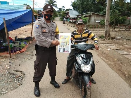 Kapolres Tanah Laut melalui Kapolsek Kintap Iptu Agus Adi Apriyoga, S.I.K, M.H mengungkapkan, Sosialisasi Perbup Tanah Laut nomor 99 tahun 2020 tentang pencegahan COVID-19. Sosialisasi dilakukan Polsek Kintap baik dengan cara tatap muka, pemasangan spanduk, barner, baliho, selebaran, media elektronik, dll, Senin (16/11/2020).