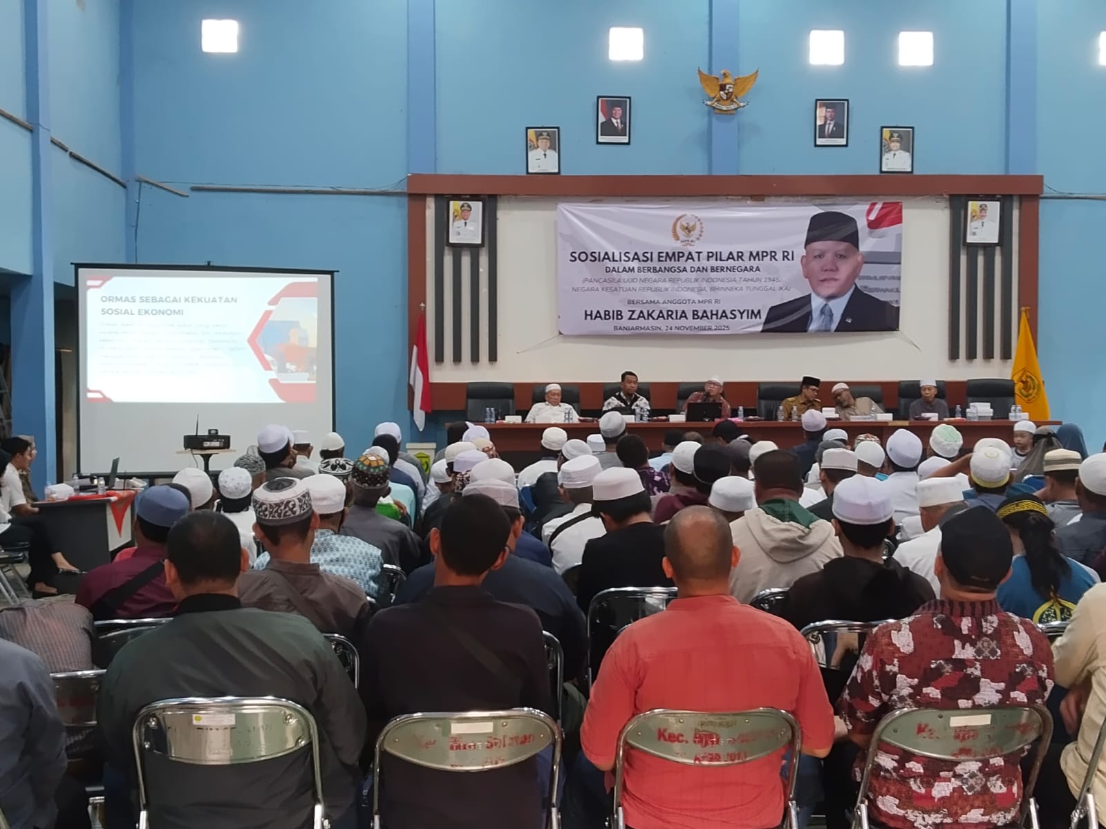 Banjarmasin, BARITOPOST.CO.ID – Habib Zakaria Bahasyim menggelar Sosialisasi Empat Pilar Kebangsaan di aula Kantor Kecamatan Banjarmasin Selatan, Kota Banjarmasin, Provinsi Kalimantan Selatan (Kalsel) pada Senin (24/11/2025).