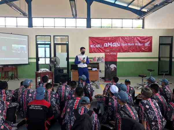 Banjarmasin, BARITOPOST.CO.ID -Kegiatan rutin yang digelar Trio Motor yaitu sosialisasi Safety Riding, masih konsisten dilaksanakan. Tim Safety Riding Trio Motor selaku main dealer sepeda motor Honda di Kalimantan Selatan dan Kalimantan Tengah pada Kamis, 10 Maret 2022 mengunjungi SMKN 1 Kertak Hanyar.