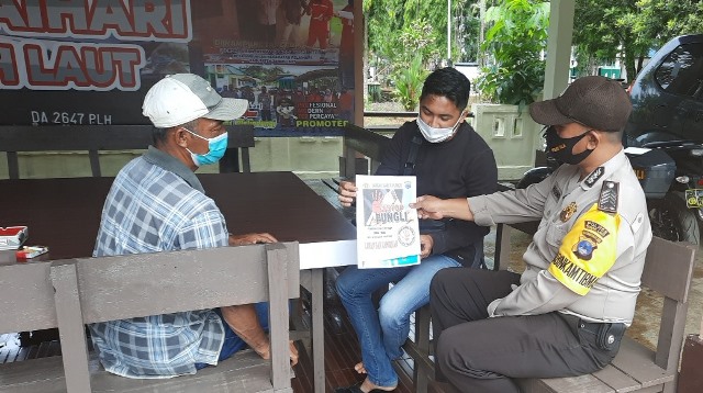 Bripka Rahmat laksanakan Himbauan/Sosialisasi kepada masyarakat terkait Saber Pungli kepada warga di Wilayah Hukum Polsek Pelaihari Polres Tanah Laut Polda Kalimantan Selatan, Sabtu ( 28/11/2020 ).