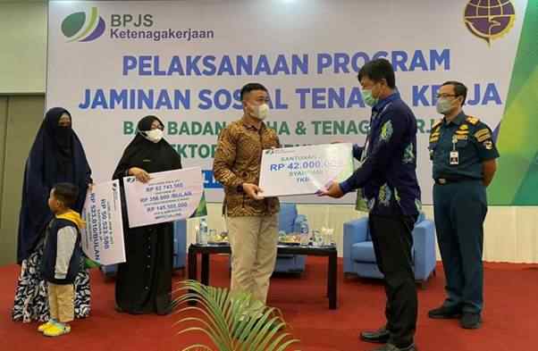 Selanjutnya, ahli waris Arifin Nor Rasyid dari Meratus Line, santunan JKM dan JHT sebesar Rp 82.743.560, santunan JP Rp 356.600/bulan, santunan beasiswa (2 anak) Rp 145.500.000.