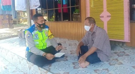 Sosialisasikan 3M, Bhabinkamtibmas Sambang Warga dan Bagikan Masker
