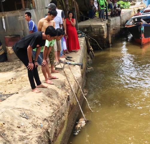 TEMUAN MAYAT-Mayat laki-laki mengapung di Sungai Awang Jalan Arya Pujangga Handil Bakti Kecamatan Alalak Berangas Kabupaten Barito Kuala (Batola), Kamis (26/9/2019) siang sekitar pukul 12.10 Wita. (foto:ist)