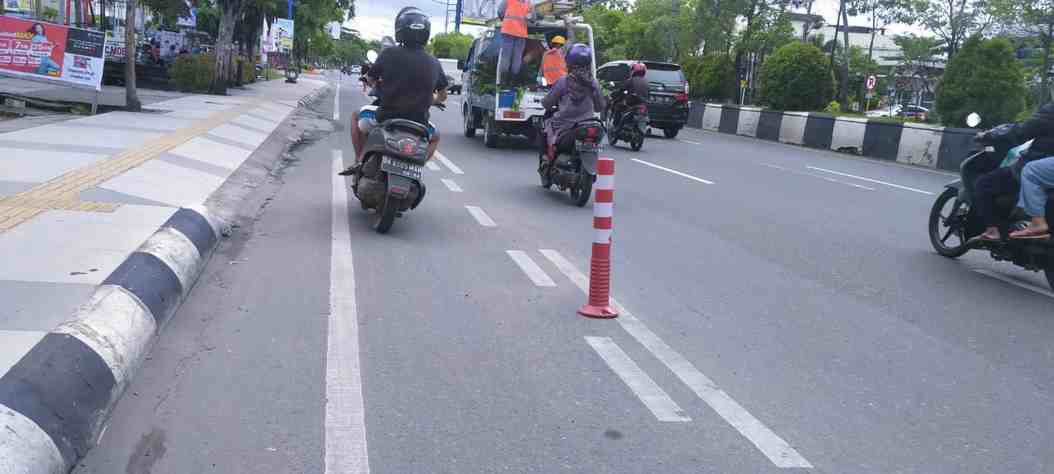 Banjarmasin, BARITO – Posisi stick cone di Jalan A Yani Banjarmasin yang kontroversial akhirnya dilepas satu persatu oleh Pemko Banjarmasin.