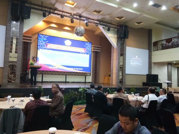 Ketua STKIP PGRI Abidinsyah ketika memberikan sambutan dalam acara Syukuran Akreditasi Instutusi dan Prodi dan Kelulusan CPNS di salah satu ruang pertemuan hotel Jalan Haryono MT, Sabtu (4/5).