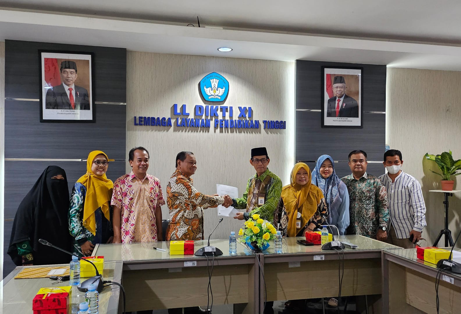Surat Keputusan ini diserahkan langsung oleh Kepala LLDIKTI XI, Dr Drs Muhammad Akbar, MSi kepada Wakil Ketua PPLP PT PGRI Banjarmasin, Drs. H. Riduan Saberan, M.M.