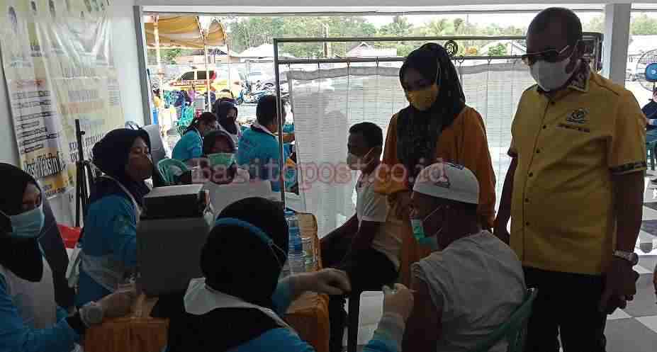 H.Rahimullah ketua DPD Partai Golkar yang juga wakil ketua DPRD Tala mengatakan, kegiatan vaksinasi massal sebagai wujud untuk mendukung program pemerintah, kendati di Kabupaten Tanah Laut telah terjadi penurunan kasus covid 19.