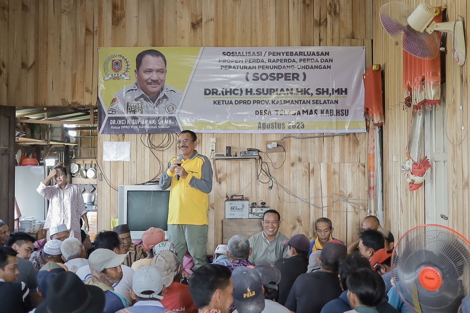 Pesan moral ini disampaikan Supian HK saat melaksanakan kegiatan Sosialisasi Peraturan Daerah (Perda) Provinsi Kalsel Nomor 10 Tahun 2019 tentang Kepemudaan bertempat di Desa Telaga Mas, Kecamatan Danau Panggang, Kabupaten Hulu Sungai Utara (HSU), Jumat (4/8/2023).