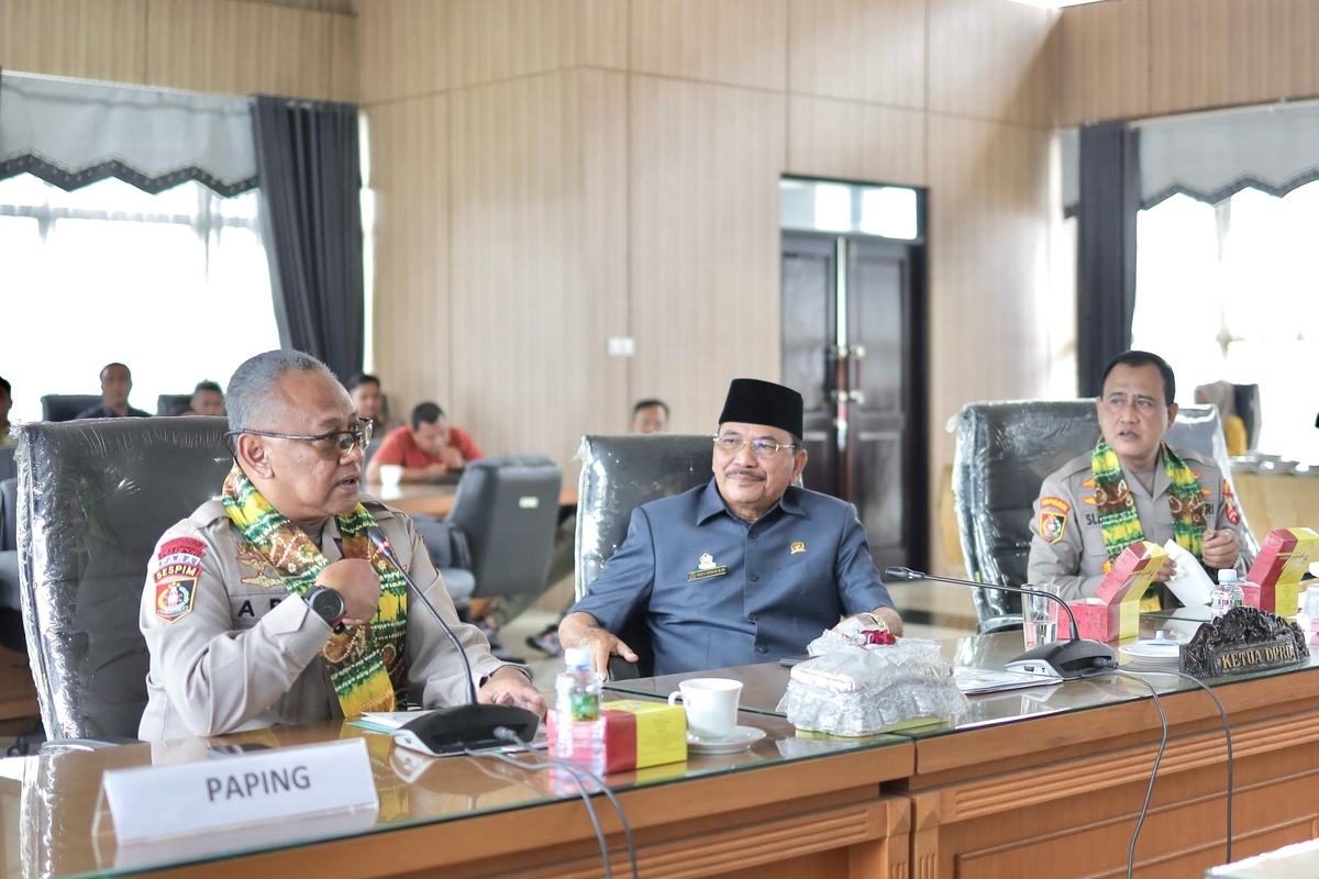 Rombongan Sispemti Lemdiklat Polri yang dipimpin Widyaiswara Utama Sespim Lemdiklat Polri, Irjen Pol Abioso Seno Aji, SIK, MH didampingi Brigjen Pol Slamet Hariyadi, SIK, MH MM dan Kombes Pol Drs Soemamo, MH diterima oleh Ketua DPRD Provinsi Kalsel, DR (HC) H Supian HK, SH, MH bersama Sekretaris DPRD Provinsi Kalsel, Muhammad Jaini dan jajarannya bertempat di Aula Gedung B DPRD Provinsi Kalsel di Jl Lambung Mangkurat Banjarmasin, Senin (22/4/2024).