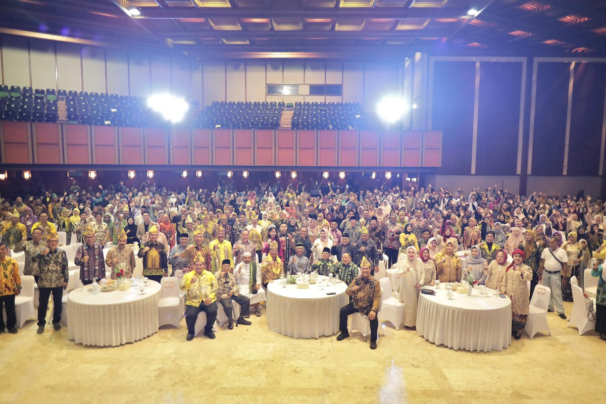 Ketua DPRD Provinsi Kalsel Dr (HC) H Supian HK, SH, MH bersama Gubernur Kalsel, H Sahbirin Noor dan istri serta sejumlah anggota DPRD Provinsi Kalsel dan tamu undangan lainnya di acara Halal Bihalal KBB se-Jabodetabek.(foto : humasdprdkalsel)