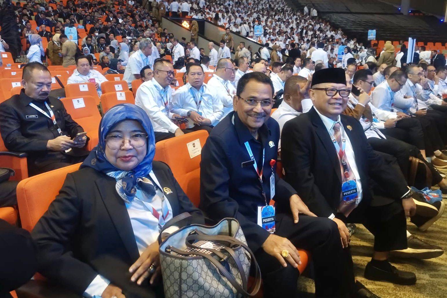 HADIRI RAKORNAS-Ketua DPRD Provinsi Kalsel Dr (HC) H Supian HK, SH, MH (tengah) saat menghadiri kegiatan Rakornas Pemerintah Pusat dan Daerah Tahun 2026 yang berlangsung di Sentul International Convention Center (SICC) Jawa Barat.(foto : humasdprdkalsel)