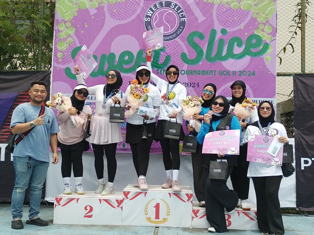 “Bersyukur kegiatan ini berjalan lancar. Semua ini berkat dukungan semua pihak sehingga bisa sesemarak ini,” ungkap Ketua Pelaksana Sweet Slice Tennis Tournament Volume II, Karmila Muhidin.