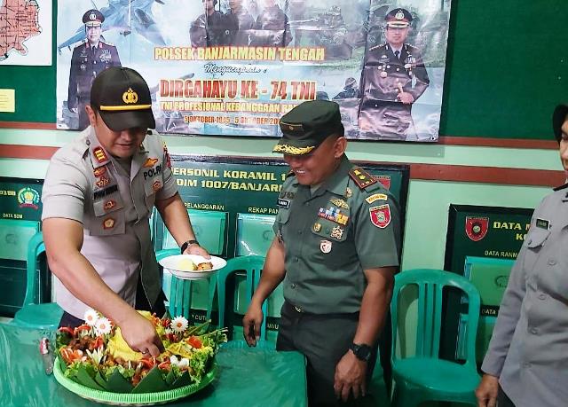 Kegiatan tersebut dilaksanakan dalam rangka silaturahmi sekaligus memeriahkan HUT TNI ke-74, disambut Danramil Banjarmasin Barat Mayor CZI Tandra Wideru beserta anggota. Selanjutnya acara dilaksanakan berupa memberikan ucapan ulang tahun kepada Tandra disusul penyerahan nasi tumpeng, makan siang dan foto bersama.