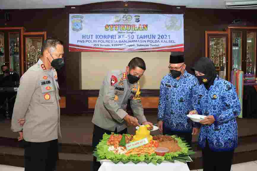 Hal itu disampaikannya usai acara tasyakuran itu, ditandai dengan prosesi pemotongan tumpeng oleh Kapolresta Banjarmasin, Kombes Pol. Rachmat Hendrawan. Nasi tumpeng itu diserahkan kepada perwakilan ASN di lingkungan Polresta Banjarmasin dan berharap PNS menjadi contoh kepada masyarakat terkait menghadapi Covid-19 termasuk mengajak warga untuk menyukseskan vaksinasi.