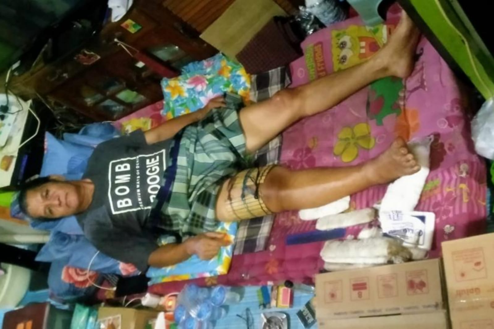 Pria setengah baya ini mengalami patah kaki akibat ditabrak sopir ugal-ugalan yang diduga dikendarai oknum polisi berinisial AN yang bertugas di Sabhara Polda Kalsel.