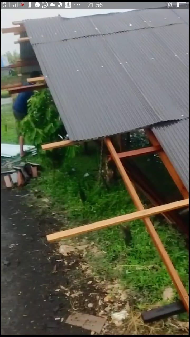 Namun datang angin dan menyapu atap dan tiang rumah warga Jalan A Gang Ikhlas Kelurahan Murung Raya Banjamasin Selatannitu