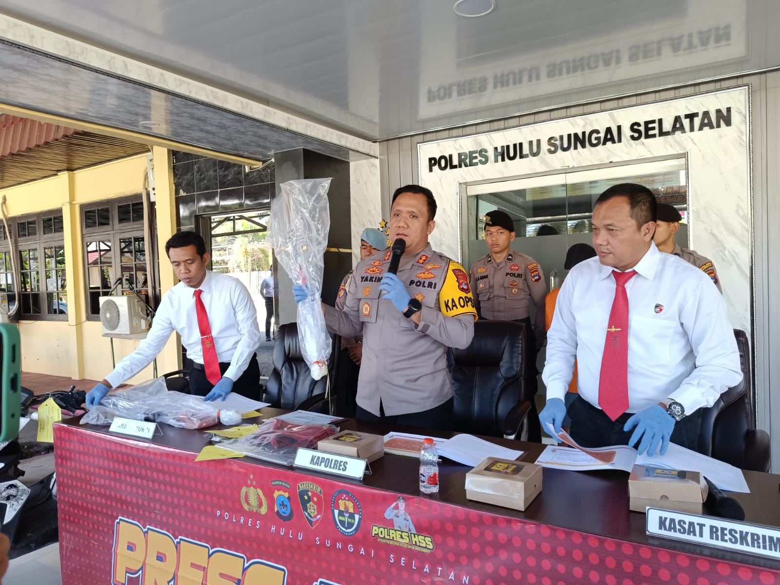 KAPOLRES HSS AKBP Muhammad Yakin Rusdi saat press release kasus pembunuhan Kakek Tajuddin.(Foto Istimewa)