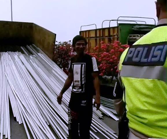 Hampir setengah jam lebih Hendra dibantu keneknya menaikkkan rangka baja kembali akibat jatuh tersebut. Sedangkan pihak kepolisian yang dekat Pos jembatan mengatur lalin agar tidak macet.