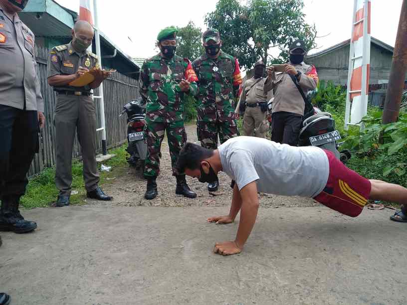 Salah satunya pemuda bernama Ichsan terpaksa disuruh petugas push up, lantaran pria berusia 30 tahun ini tak memiliki masker saat melintas di muara Kelayan. Warga Jalan Pekauman itu rela daripada dirinya kena sanksi dengan Rp 100.000,-.
