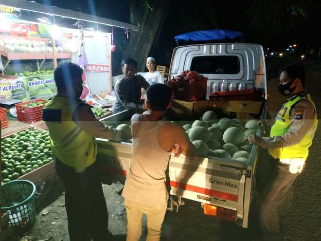 Pada kesempatan tersebut Personil Patroli malam memberikan beberapa himbauan Kamtibmas serta Protokol Kesehatan terhadap pedagang buah sehingga terjalin situasi kamtibmas yang aman dan apabila informasi tentang perbuatan kejahatan segera di informasikan kepada pihak Kepolisian apabila menemukan hal yang mencurigakan.