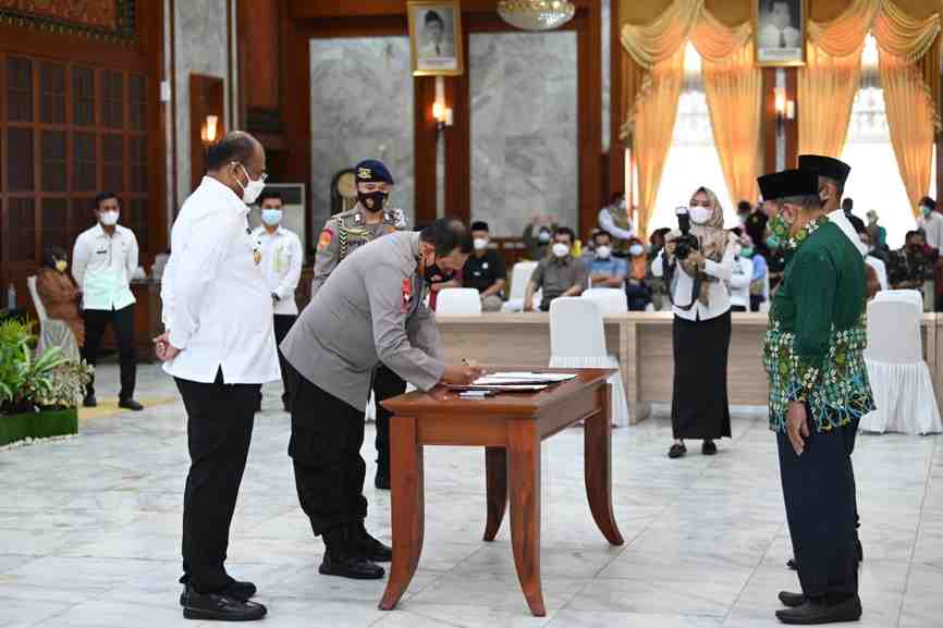 Banjarmasin, BARITOPOST.CO.ID – Polda Kalsel menandatangani nota kesepahaman dan kerjasama (MoU) dengan Nahdlatul Ulama (NU) dan Muhammadiyah di Mahligai Pancasila Banjarmasin, di Mahligai Pancasila Banjarmasin Rabu (3/3/2021).
