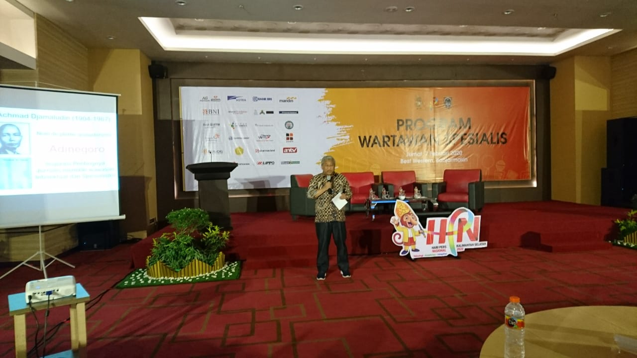 Ketua Dewan Pers Muhammad Nuh jadi Pembicara Utama pada Seminar Program Wartawan Spesialis di Hotel Best Western Banjarmasin, Jumat (7/2/2020) siang. Dihadiri puluhan wartawan dari berbagai daerah, seminar itu digelar dalam rangka Perayaan Hari Pers Nasional (HPN) di Kota Seribu Sungai ini berlangsung penuh antusias.